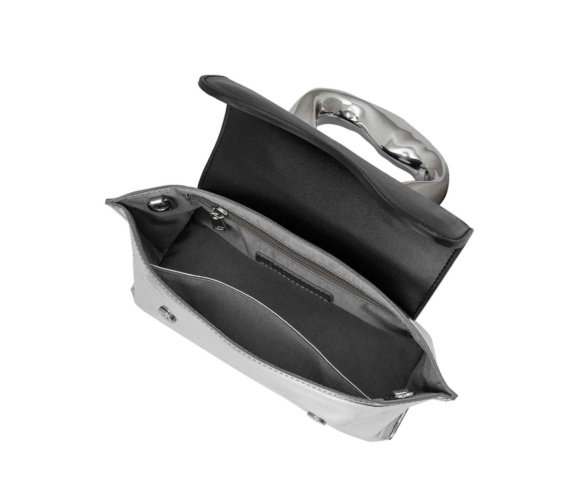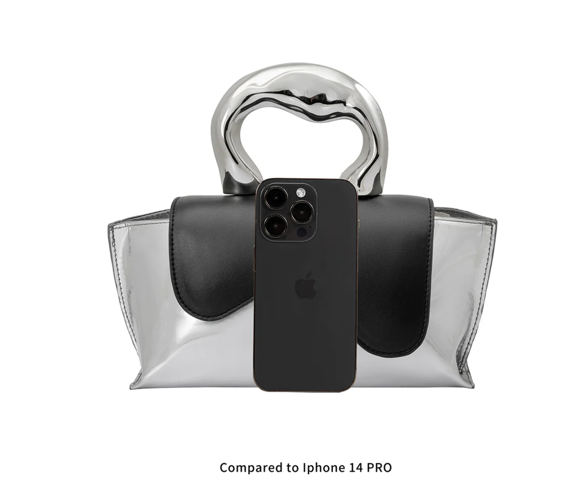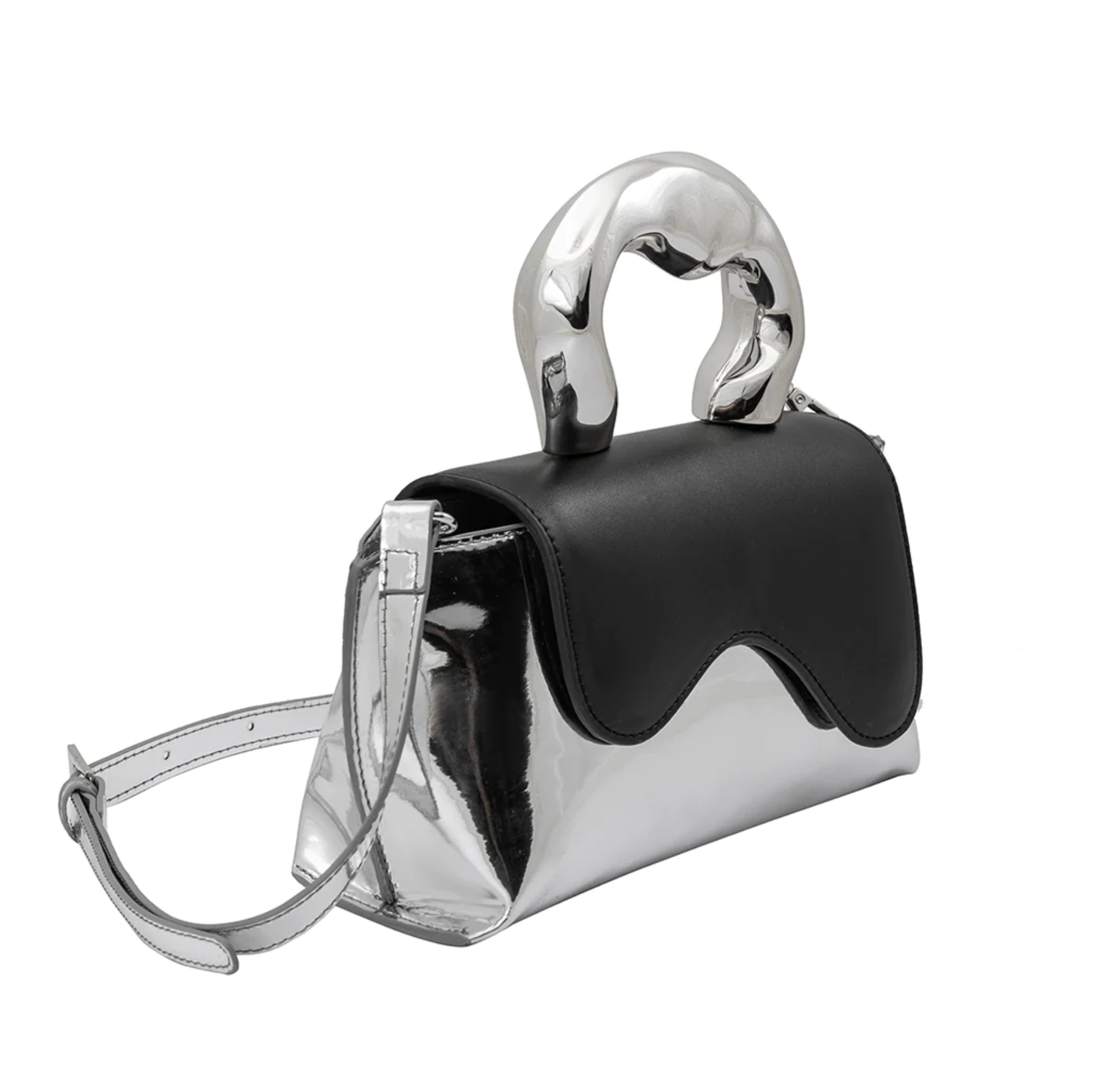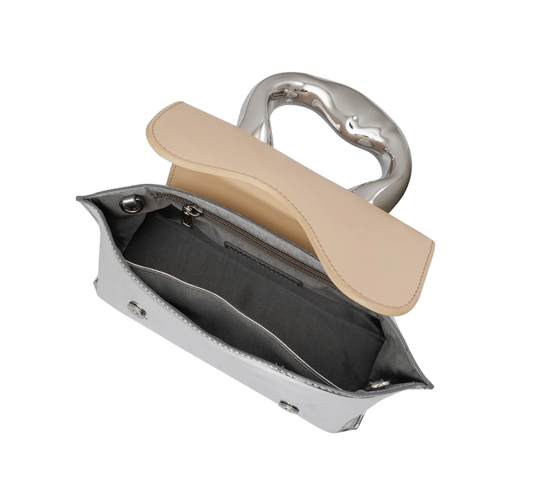 Meet Akari one of the most unique and intricate handbags you will find. Made out of recycled vegan leather this metallic top handle bag makes a fashionable yet sustainable statement piece. Wear it comfortably as a crossbody bag using the adjustable strap for hands-free convenience.