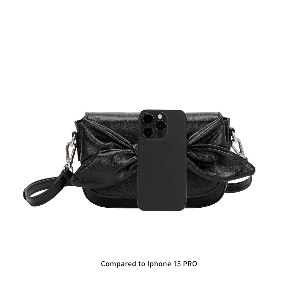 The Faye bag offers versatile style and convenience with its sleek clutch design, adorned with a beautiful bow. Its shiny finish adds a touch of elegance, while its small size makes it perfect for a night out. Use it as a crossbody for hands-free carrying.