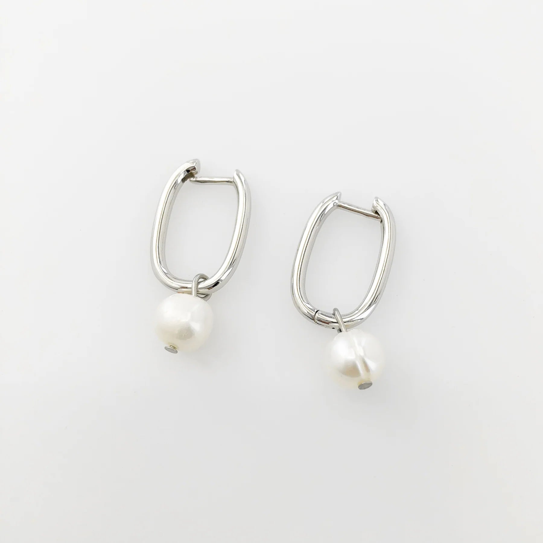Rounded rectangular clip earrings with danging genuine freshwater pearl - the pearl is removable so you can add a different charm or wear it plain for a variety of different look.