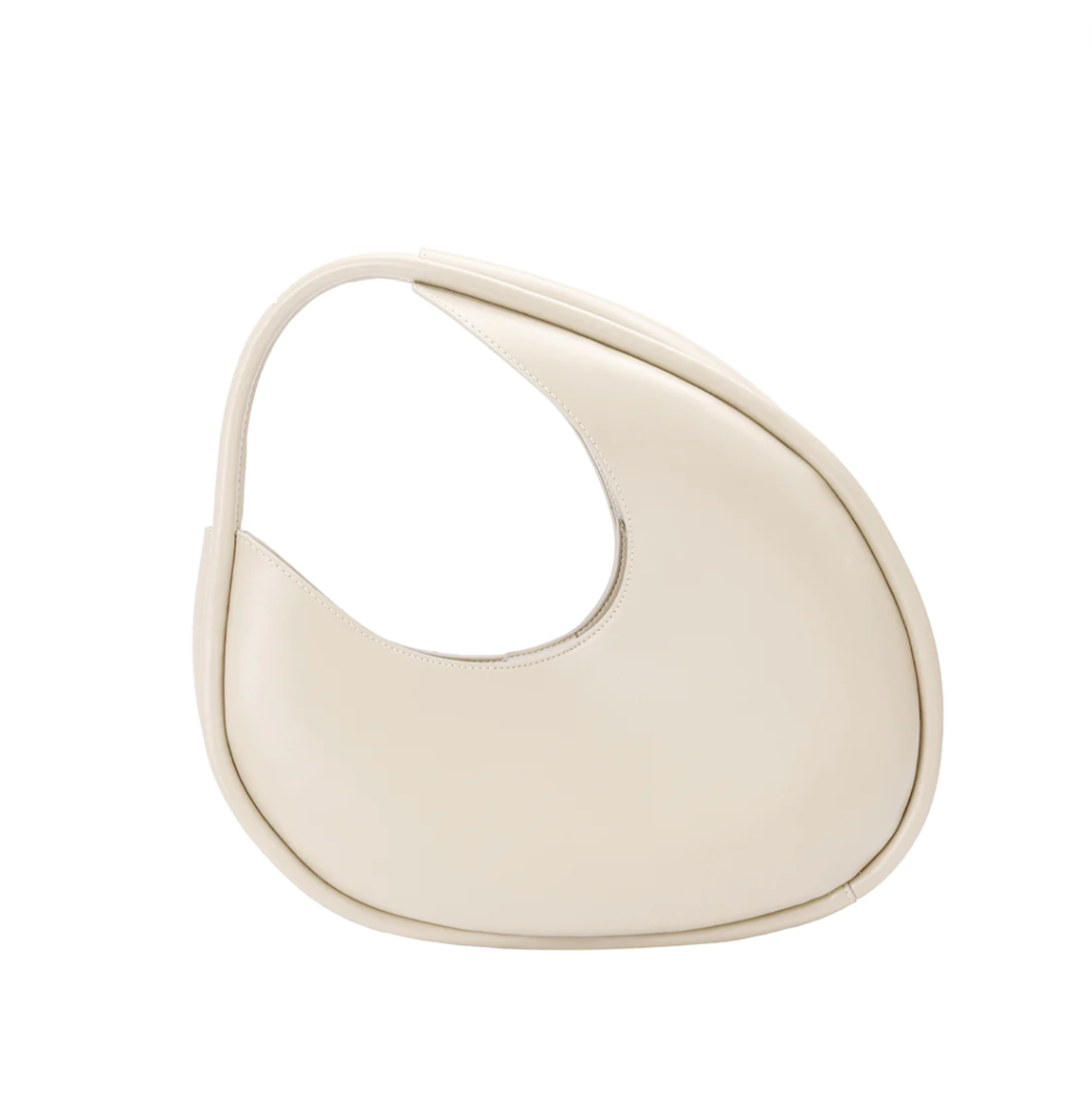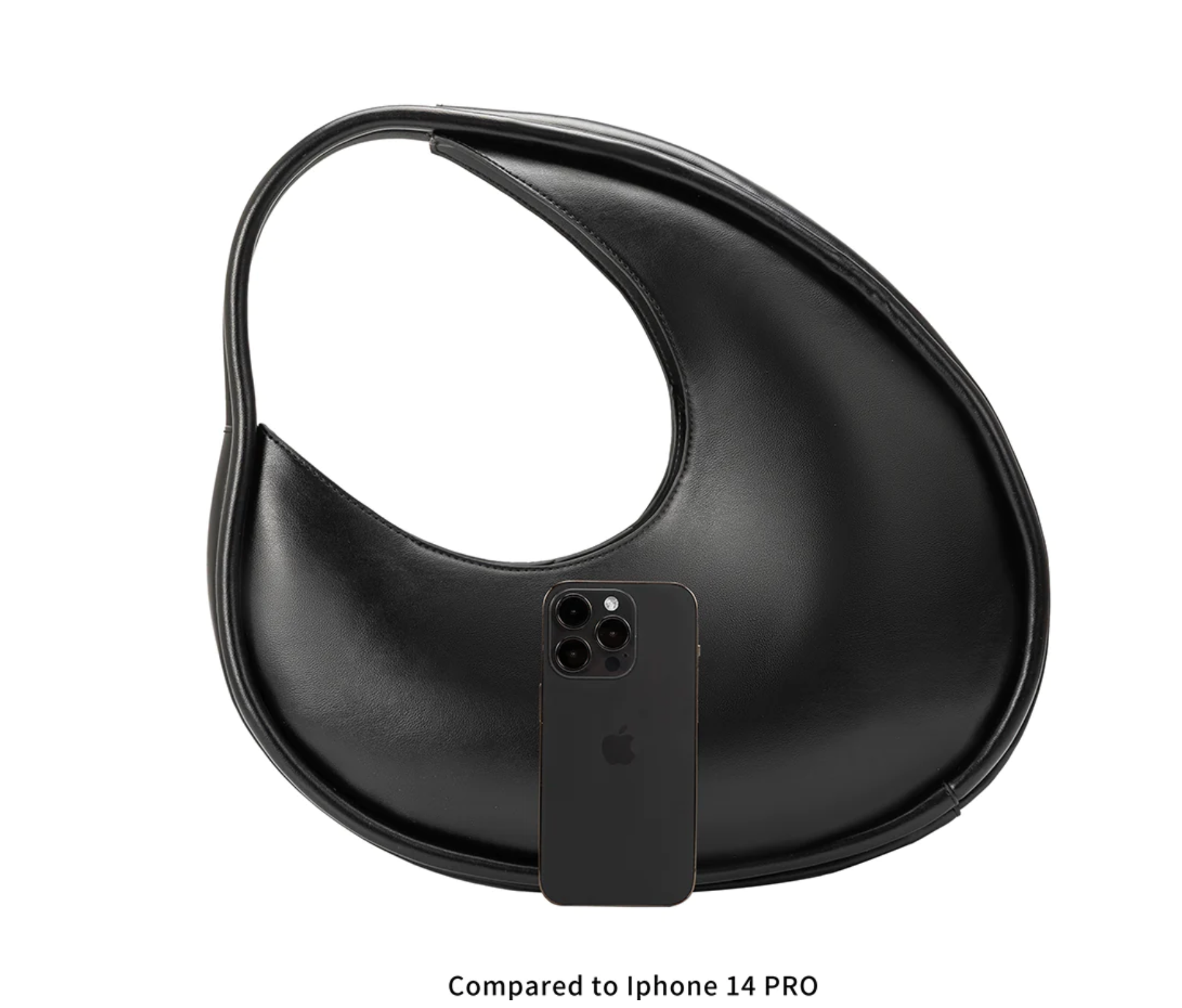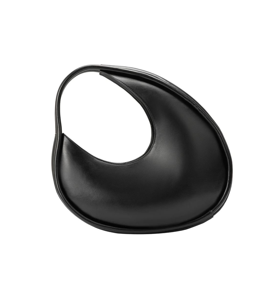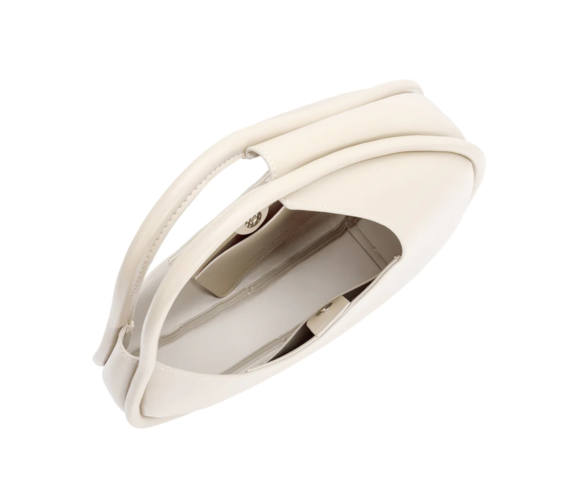 Introducing Nikki a unique circular asymmetrical shoulder bag made with recycled vegan leather. The double piping structured handles give this handbag its unique shape and feel. With a spacious interior, you can fit your everyday essentials like a phone, wallet, keys, sunglasses, and makeup.