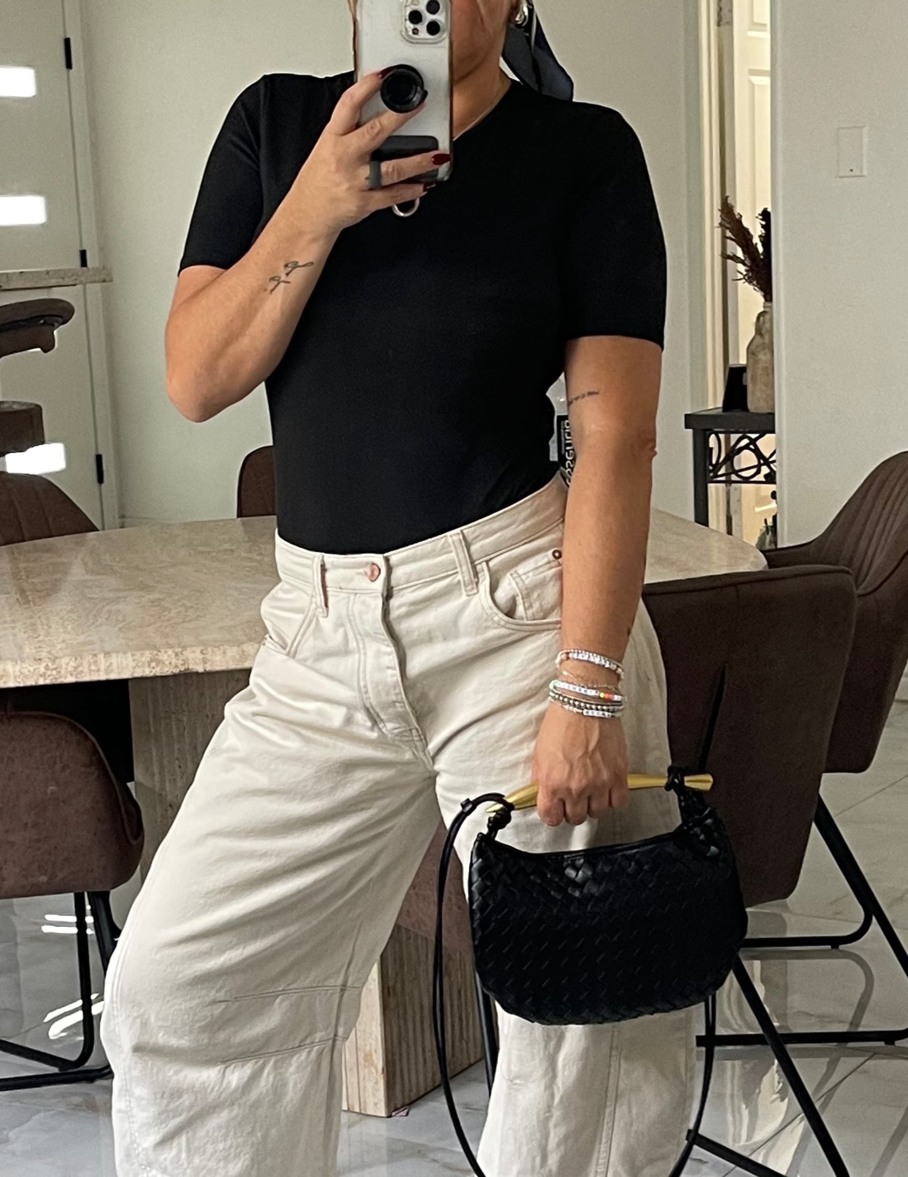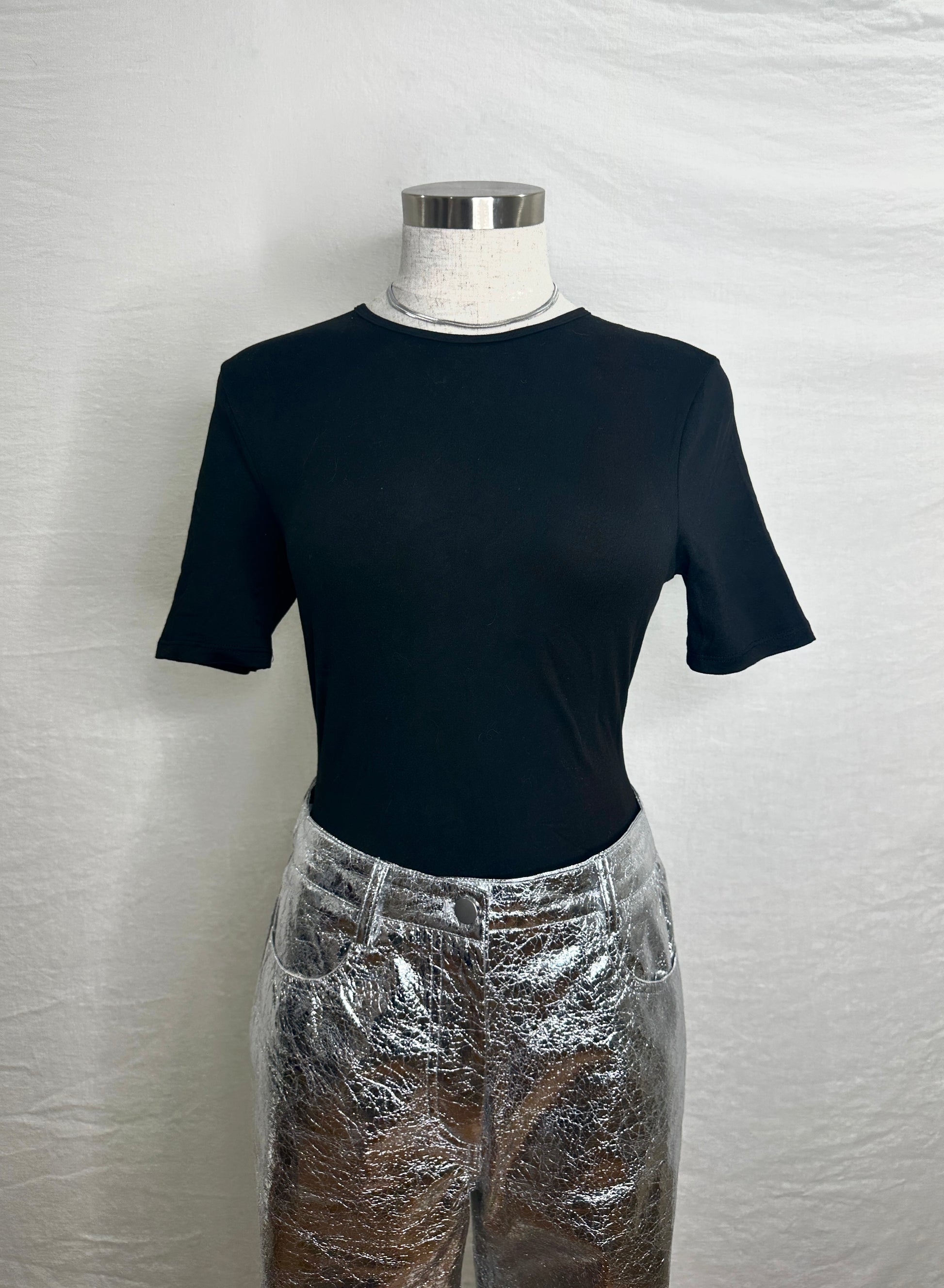 This short sleeve body suit is the perfect combination of comfortable and chic. An essential closet must.
